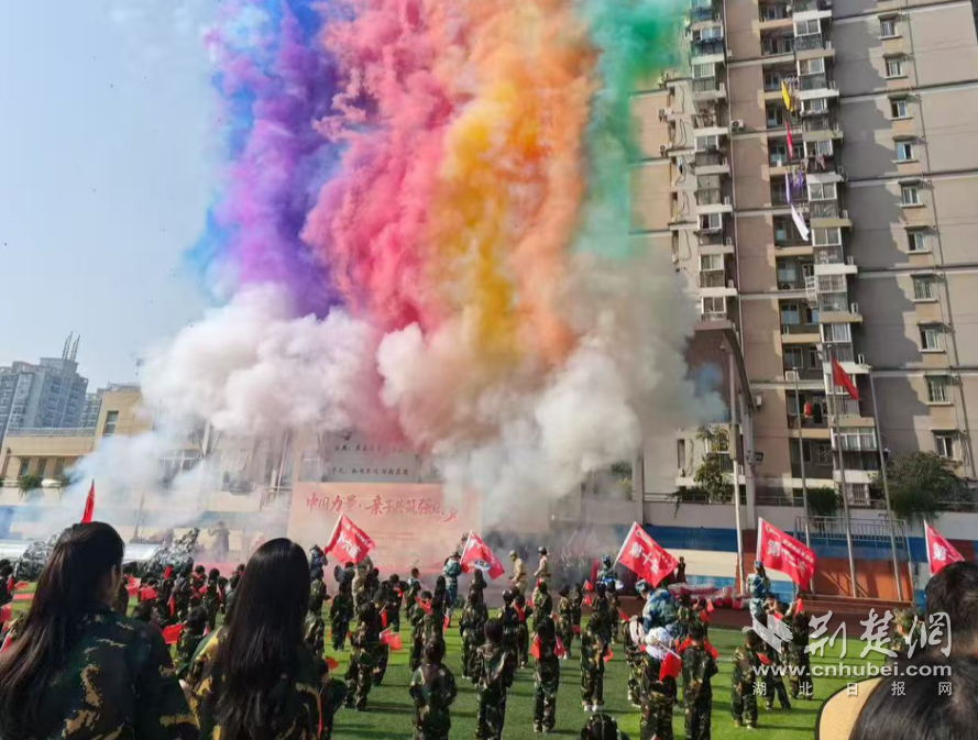 荆楚网(湖北日报网)讯(记者齐一璇 通讯员陈晓丹)红旗猎猎,映照炽热童心;军歌铿锵,礼赞壮丽山河。近日,武汉市江岸区滨江幼儿园一场以“国防”为名、以“爱国”为魂的亲子运动会,在武汉市汉铁高级中学运动场上演。来自四个园区的2000余名师生与家长热血集结。一群稚气未脱的“小小战士”与爸爸妈妈携手并肩,在竞技中挥洒汗水、凝聚力量,演绎新时代的“中国力量”。
